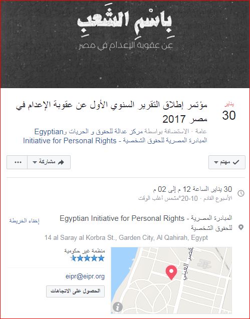 أعلنت المبادرة المصرية للحقوق الشخصية، عن أنها بصدد تدشين مؤتمر، في 30 يناير، لإطلاق التقرير السنوي الأول عن عقوبة الإعدام في مصر 2017. وكشفت عن أن التقرير سيُسلط ...