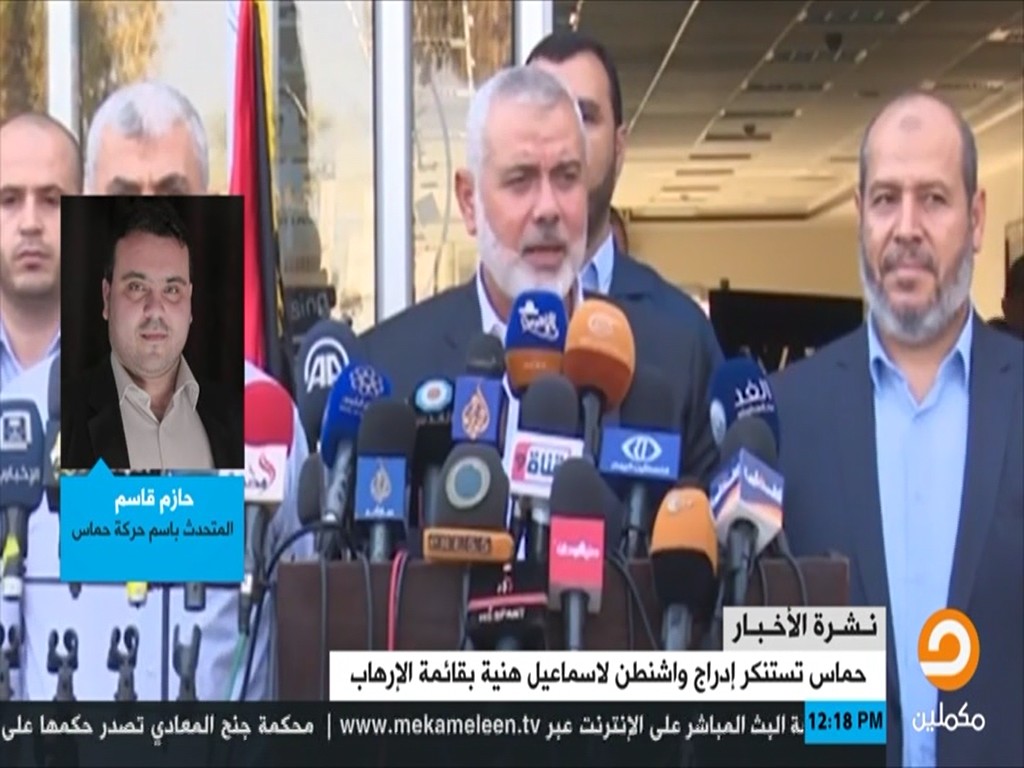 شاهد| حماس: إدراج واشنطن “هنية” بقوائم الإرهاب ابتزاز للقبول بصفقة القرن