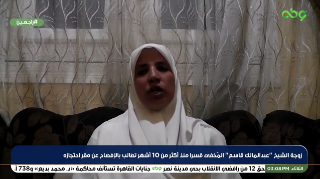طالبت زوجة الشيخ عبد المالك قاسم، المختفي قسريًا منذ 12 أبريل الماضي، سلطات الانقلاب العسكري بالإفصاح عن مقر احتجازه. وقالت زوجة عبد المالك: إنه اعتقل من منزله بمدينة ...