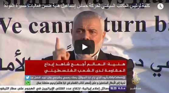 قال إسماعيل هنية، رئيس المكتب السياسي لحركة المقاومة الإسلامية “حماس”، اليوم الإثنين: إن غزة “تدخل مرحلة جديدة من المقاومة السلمية” رغم امتلاكها للصواريخ، داعيا إلى استمرار الاحتجاجات على ...
