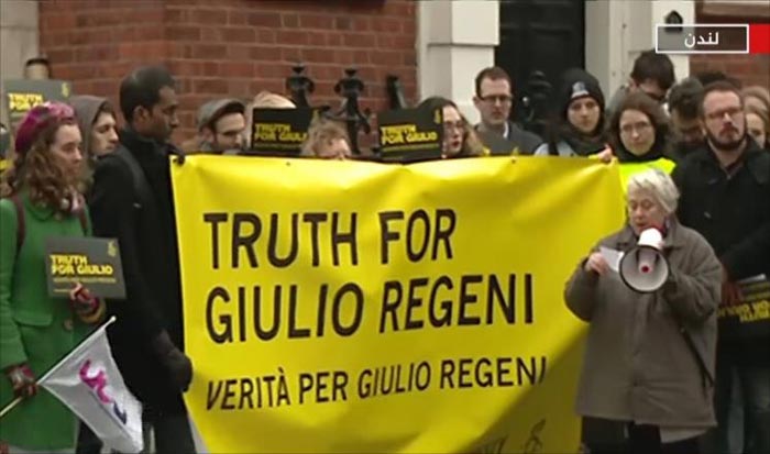 مظاهرة أمام سفارة مصر بلندن ضد قتلة “ريجيني”