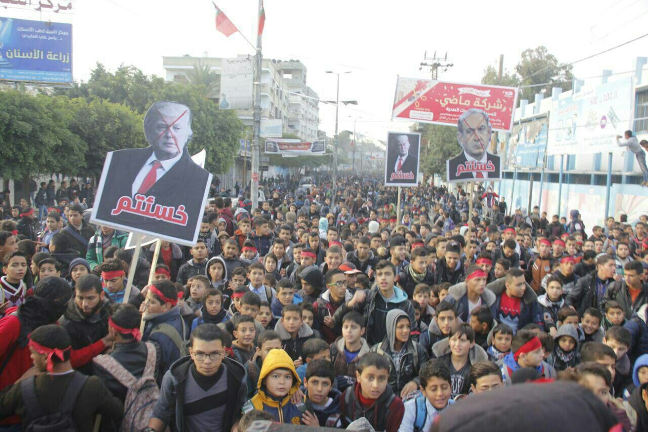 انطلقت صباح اليوم الأحد، مظاهرات حاشدة بغزة شارك فيها آلاف الطلاب، رافعين لافتات "خسئتم" لنتنياهو وترامب، وهتفوا بعروبة القدس وأنها عاصمة أبدية لفلسطين. كذلك خرجت تظاهرة ...