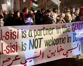 لا مكان لمجرمي الحرب في أوروبا.. نشطاء يتظاهرون أمام مقر استقبال السيسي في الدنمارك