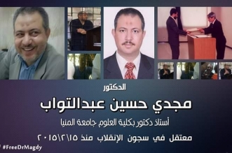 استنكر عدد من رواد مواقع التواصل الاجتماعي، استمرار الاعتقال والتنكيل بالأستاذ الدكتور مجدي حسين عبد التواب، نقيب العلميين سابقًا، داخل محبسه بسجن برج العرب، فى ظروف احتجازٍ تتنافى ...