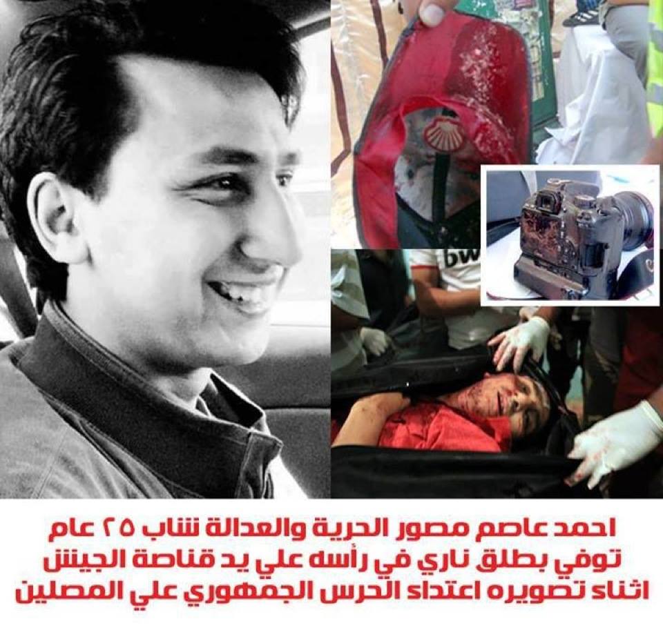كتب: أسامة حمدان ما بين دماء المصور الصحفي أحمد عاصم، شهيد مذبحة الحرس الجمهوري في مِصْر، ودماء رفيقه على درب الشهادة المصور الصحفي "السوري" جمعة الأحمد "أبو النور"، ...