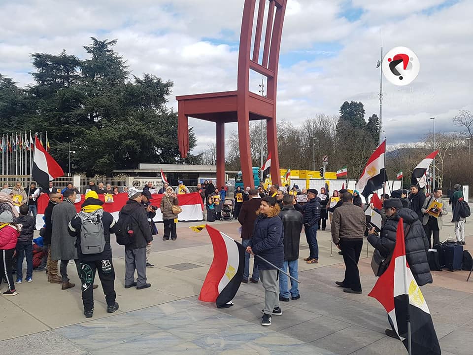 شاهد.. وقفة أمام مقر الامم المتحدة بـ”جنيف” رفضا لجرائم عصابة الانقلاب