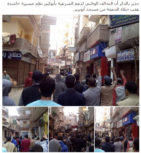 كتب أحمد علي انتفض ثوار الشرقية عقب صلاة جمعة اليوم من مدينة أبوكبير والعدوة بههيا والخضارية بالإبراهيمية وشلشلمون بمنيا القمح، وكفر صقر والعاشر من رمضان. وبعد العصر من ...