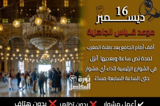 دعوات للنزول غدا الإثنين بعد صلاة المغرب بشوارع مصر لـ”#قياس_الجاهزية_16_ديسمبر”