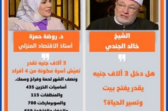 أثار قول أستاذ الاقتصاد المنزلي بجامعة حلوان روضة حمزة في البرنامج التلفزيوني لعلهم يفقهون “يمكن لأسرة من 4 أفراد أن تعيش بـ3 آلاف جنيه للأكل والشرب”، مضيفة “أنهم ...