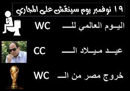 استغل نشطاء على مواقع التواصل الاجتماعي يوم 19 نوفمبر الذي يوافق اليوم العالمي للمراحيض، وأيضا يوم ميلاد قائد الانقلاب عبدالفتاح السيسي، لتنهال عليه التعليقات الساخرة والغاضبة ليتصدر هاشتاج#ارحل_يا_سيسي ...